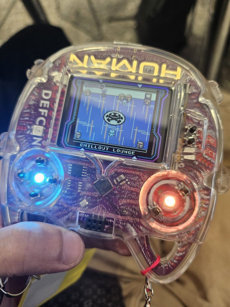 After going through the infamous LineCon for registration, the team met up with a few friends and colleagues to play around with this year’s badge, a cat-shaped Gameboy emulator. There wasn’t much to do at the con the first day – in fact, the con got off to a slow start due to downed internet at the convention center (Coincidence? Or something worse… we still don’t know!). The team enjoyed finding all kinds of secrets, QR codes, and figuring out the undocumented settings with hacker friends and strangers alike. It’s a great way to warm up the hacker mindset in preparation for the con!