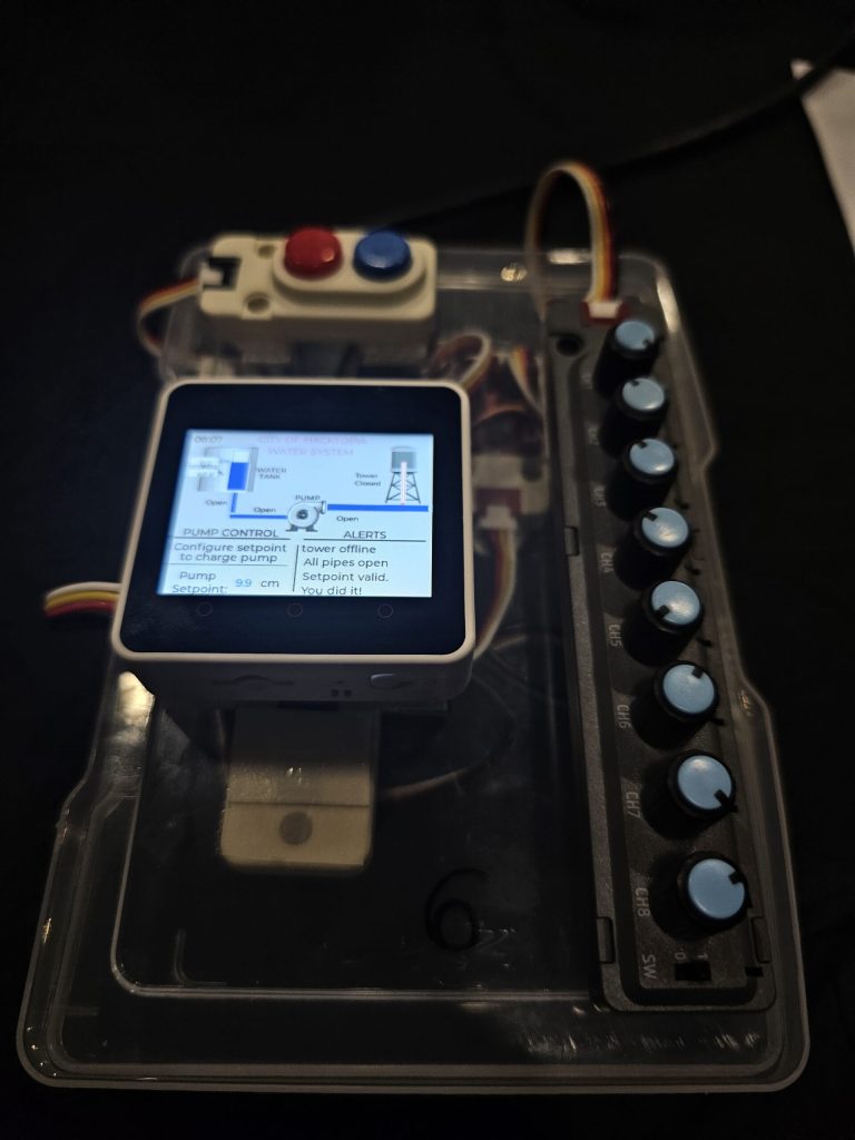 On the second day of the con, the team had more time to try their hands at Capture the Flag challenges like 5N4CK3Y (“Snackey” in layman’s terms, which was a hackable vending machine), phreaking (phone hacking), ICS (industrial control systems), and more! The highlights for the team were hacking a compromised HMI device to disrupt the bad guys and pump water back into the “city tank” and hacking point of sale systems for fun and for profit – at least in terms of stickers and goodies – in the payment village.