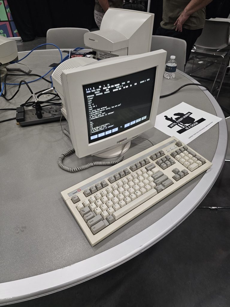 One of the main purposes of conferences is to share relevant information by way of unidirectional communication (ie. Talks). Although DEFCON does host a multitude of talks, many of which are generally meaningful or useful regardless of experience level, there is so much that can be learned from such a variety of sources, that talks are not always a priority. The team took the time to sit in on a few talks during the CON. One stood out as particularly interesting because it was a controversial topic for some people. Daniel Messer gave a talk entitled “A Shadow Librarian in Broad Daylight: Fighting Back Against Ever Encroaching Capitalism”. Messer spoke about his efforts as a “Shadow” Librarian which involves scanning Reddit for people that are looking for books or other information that is either not available digitally or is protected by DRM (Digital Rights Management – meant to protect copyrighted material from being copied without permission). He then makes the requested information available whether by scanning in physical copies, locating existing digital copies, or removing DRM protections from existing media and sharing it without protections. He explains that he does this because he believes that Capitalism has encroached too heavily upon the free availability of information to the public and because he firmly disagrees with current policies and legislation being established in various places in the United States that would restrict information (of any kind) from being available to the public (of any age). Regardless of the stance we might take on controversial topics such as this one, I think it demonstrated the mentality of the DEF CON community and hackers in general. They are willing to make a stand for what they believe to be right and have the skills that allow them to do so.