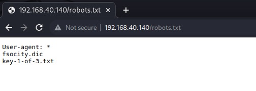 Boo! No HTTP forms were identified while browsing the website when using the Contact Forms plugin. How about we go ahead and mark another thing off the website enumeration list: check the robots.txt file. Woohoo! We just found the first key and a dic file that looks like a wordlist of some sort.